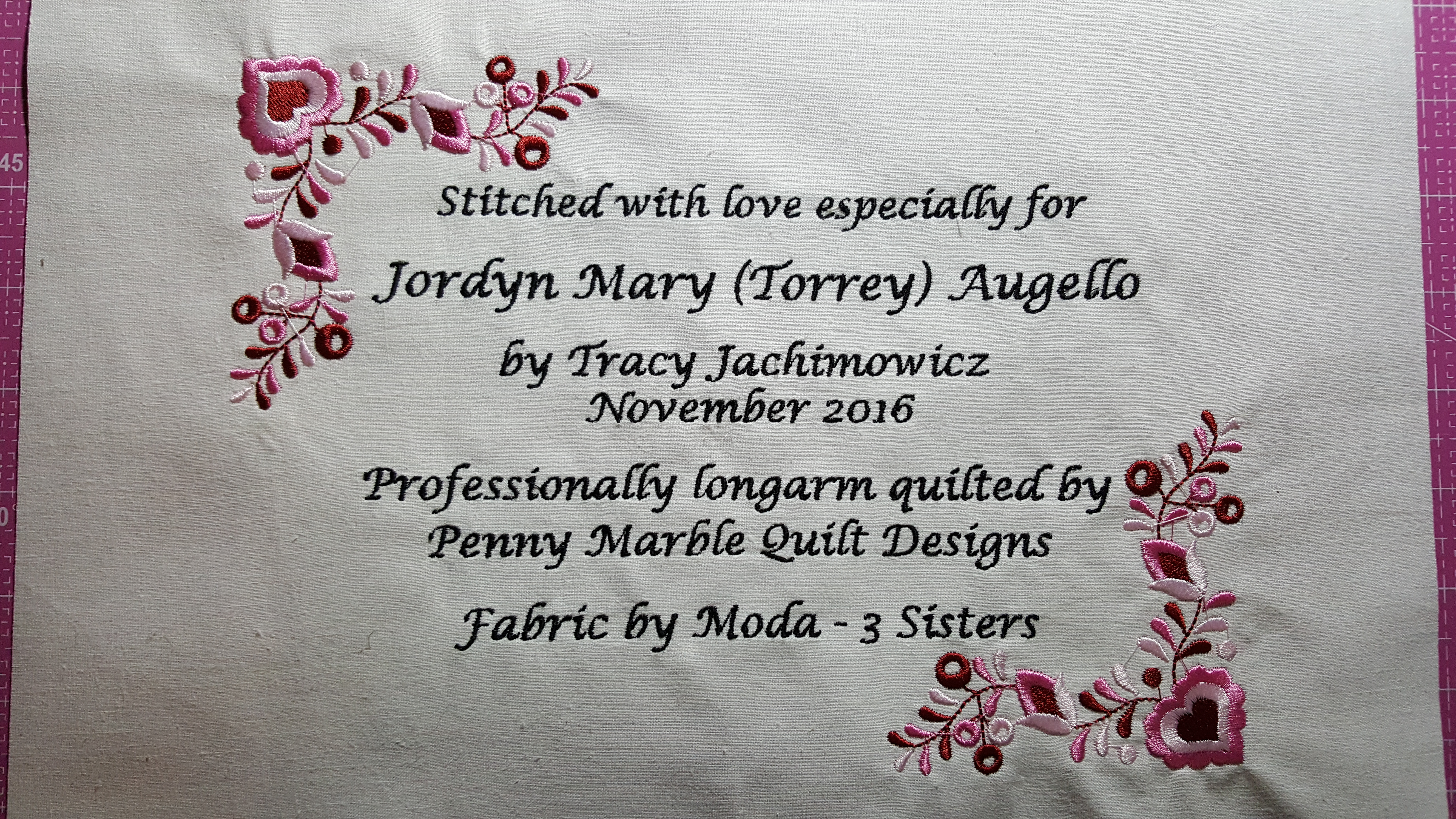 Below is a quilt that I was commissioned to longarm for a friend. This was a gift for a family friend of theirs who had recently had a baby girl prematurely due to a cancer diagnosis. I pray that this quilt provided love, warmth and comfort to everyone involved.