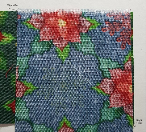 When laying the strips right sides together perpendicularly (there’s a word we never thought we’d have to hear past high school geometry), offset them by just a few threads – 1/16th of an inch will do the trick. This way, you can see both corners and will be able to draw a perfectly diagonal line from corner to corner. The amount you’d lose in the offset is miniscule, but the accuracy you’ll achieve will be priceless! Try it – let me know if it helped!